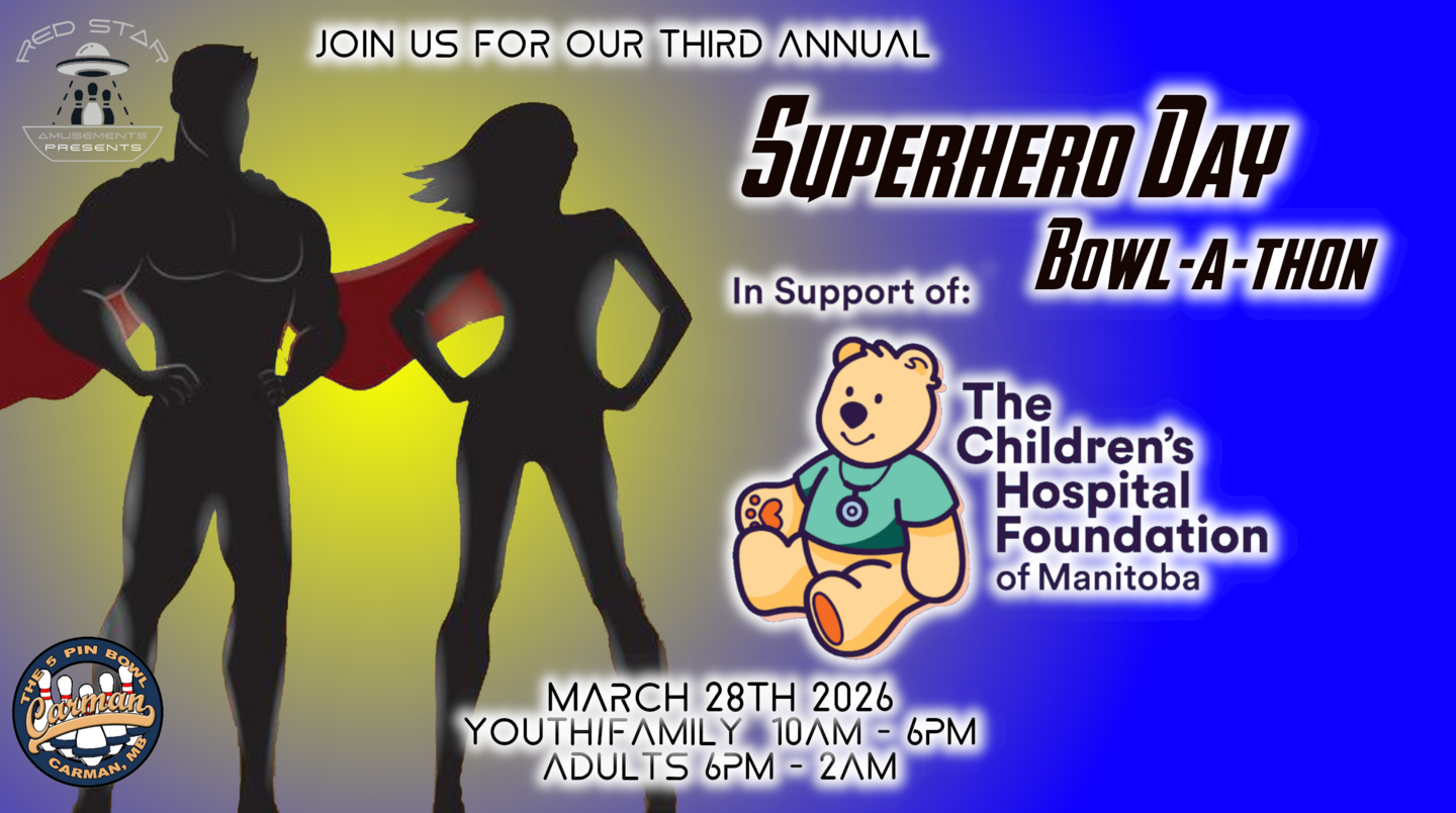 The Carman 5 Pin Bowl with Host our Third Annual Superhero Day and Bowl-a-Thon for The Children's Hospital Foundation of Manitoba